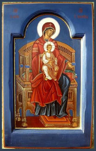 Avant de commencer cette messe de la Nativité, tournons-nous un instant vers Celle qui nous offre cet enfant, en contemplant une icône de la Vierge « Kyriotissa » ou « Vierge de majesté ».