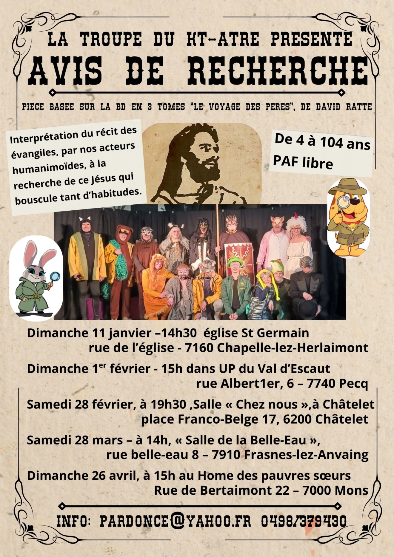 Dernière chance pour assister à "AVIS DE RECHERCHE" par la troupe du KT-âtre (Mis en ligne le 2026-04-15 16:14:15)